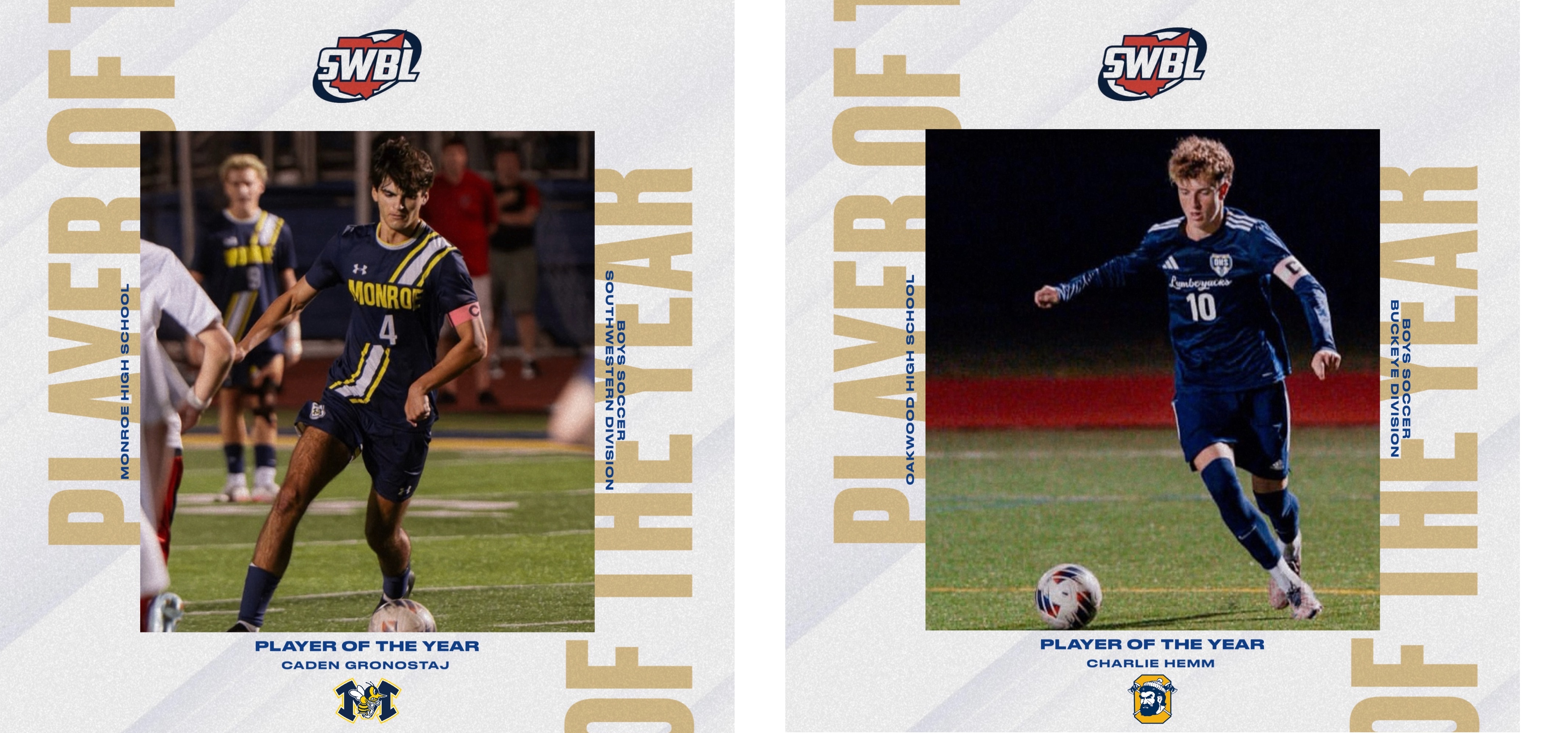 The SWBL recently announced its 2025 Boys Soccer All-League Teams. Oakwood's Charlie Hemm was named Buckeye Division Player of the Year. Hemm, a junior midfielder, has 15 goals and three assists on the season. Monroe's Caden Gronostaj was named Southwestern Division Player of the Year. Gronostaj, a senior defender, has 15 goals and 15 assists. Oakwood's Ryan Connelly was named Buckeye Division Coach of the Year, while Monroe's Billy Gronostaj was named Southwestern Division Coach of the Year. Monroe captured the Southwestern Division title for a second straight season, and Oakwood took the Buckeye Division title. Here are the SWBL Boys Soccer ALL-LEAGUE TEAMS. Congratulations to our member student-athletes and coaches! Best of luck during the postseason!
